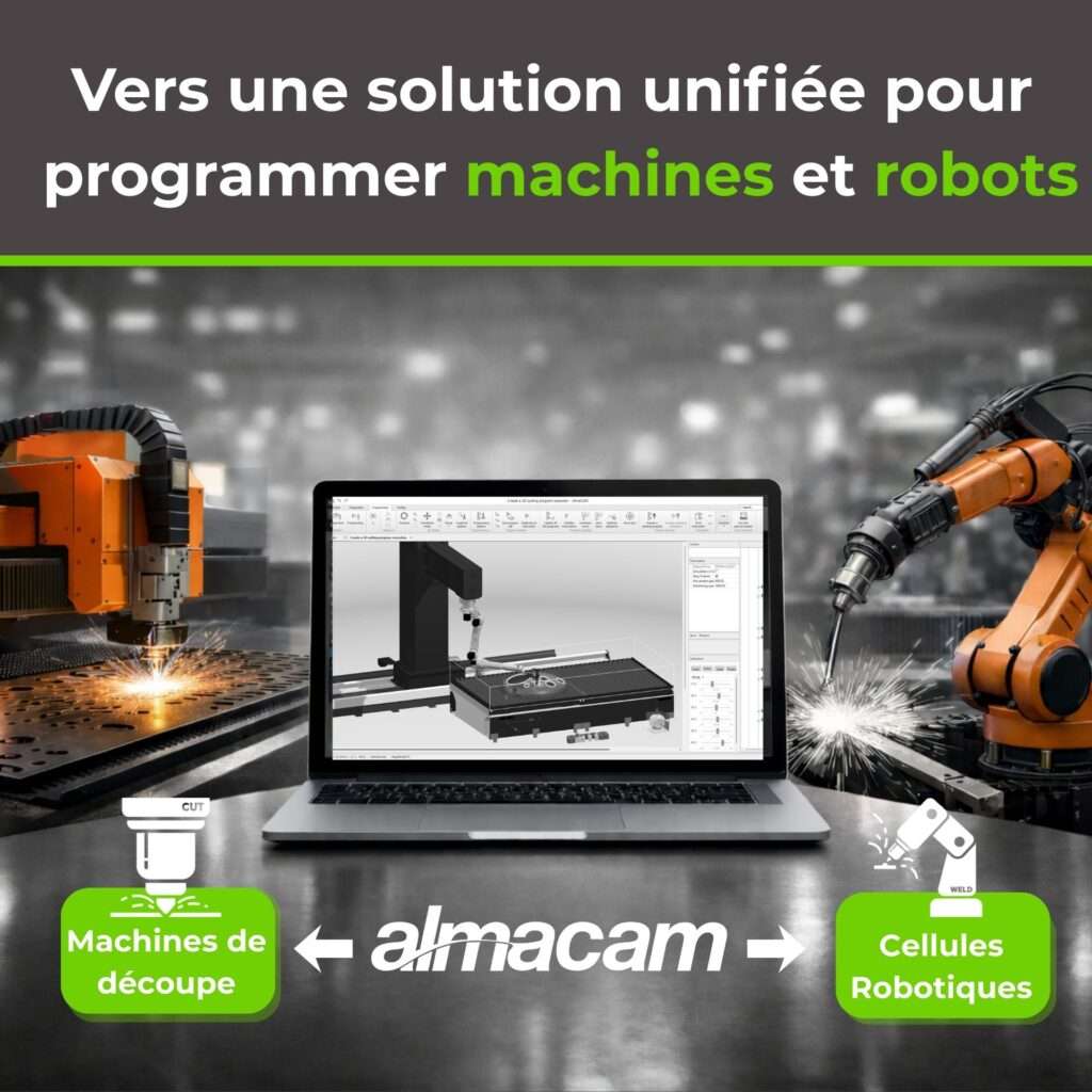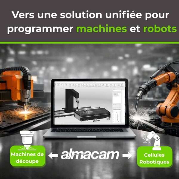 La nouvelle version d’Almacam intègre désormais les workflows robotiques directement dans la suite logicielle. La programmation des machines 2D, des tubes et des cellules robotisées de découpe et de soudage est ainsi centralisée dans un environnement unique.